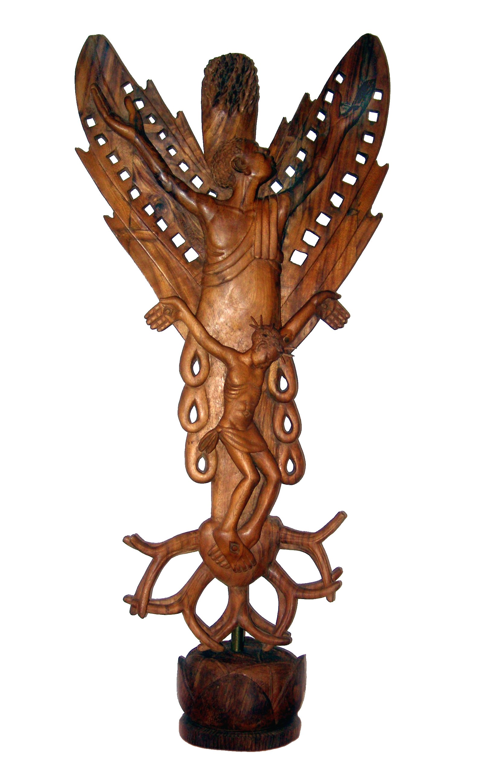 Soweit erst einmal. Und jetzt das Foto. Es zeigt eine Schnitzerei aus dem südostafrikanischen Staat Malawi, die das „Kruzifix von Mua“ genannt wird. Das Kreuz steht, etwa einen Meter hoch, im Raum der Stille im Missionsseminar in Hermannsburg. Dort hat es unser Bischof höchstpersönlich fotografiert.